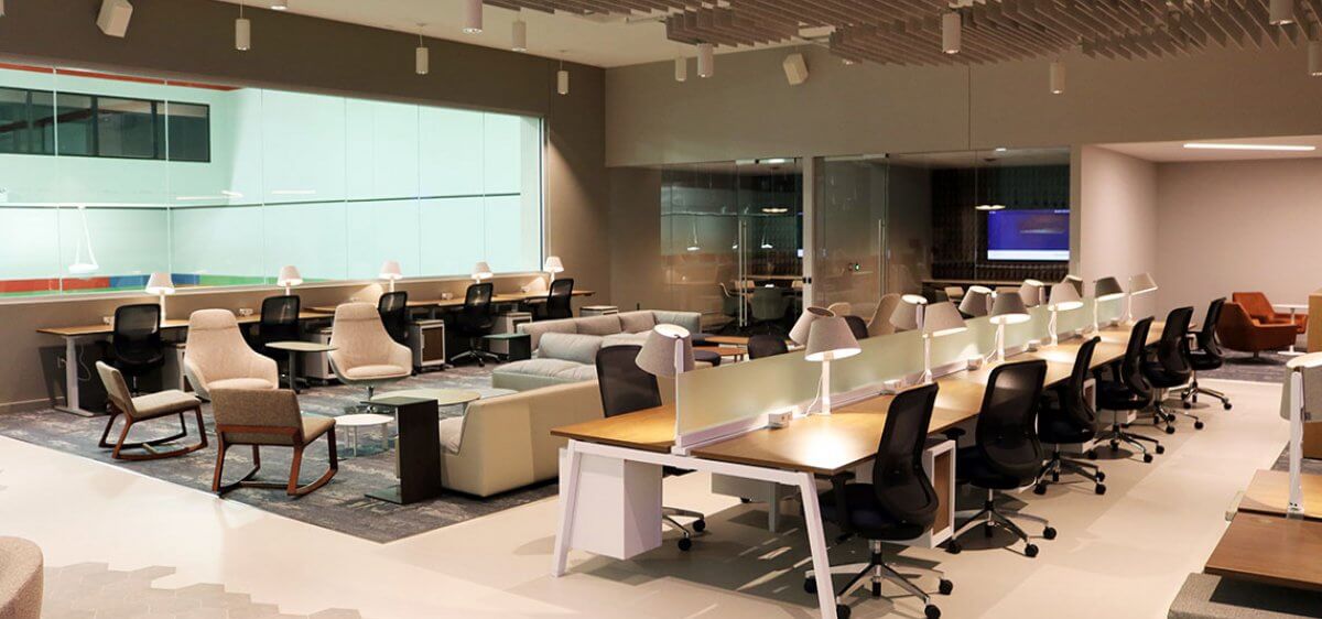 - High-end commercial-grade furniture and fixtures from top manufacturers including Teknion, Coalesse and Studio TK